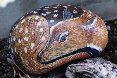 - You'll notice most of the animals depicted on these rocks are sitting curled up—a convenient way of working with the shape of the rocks.